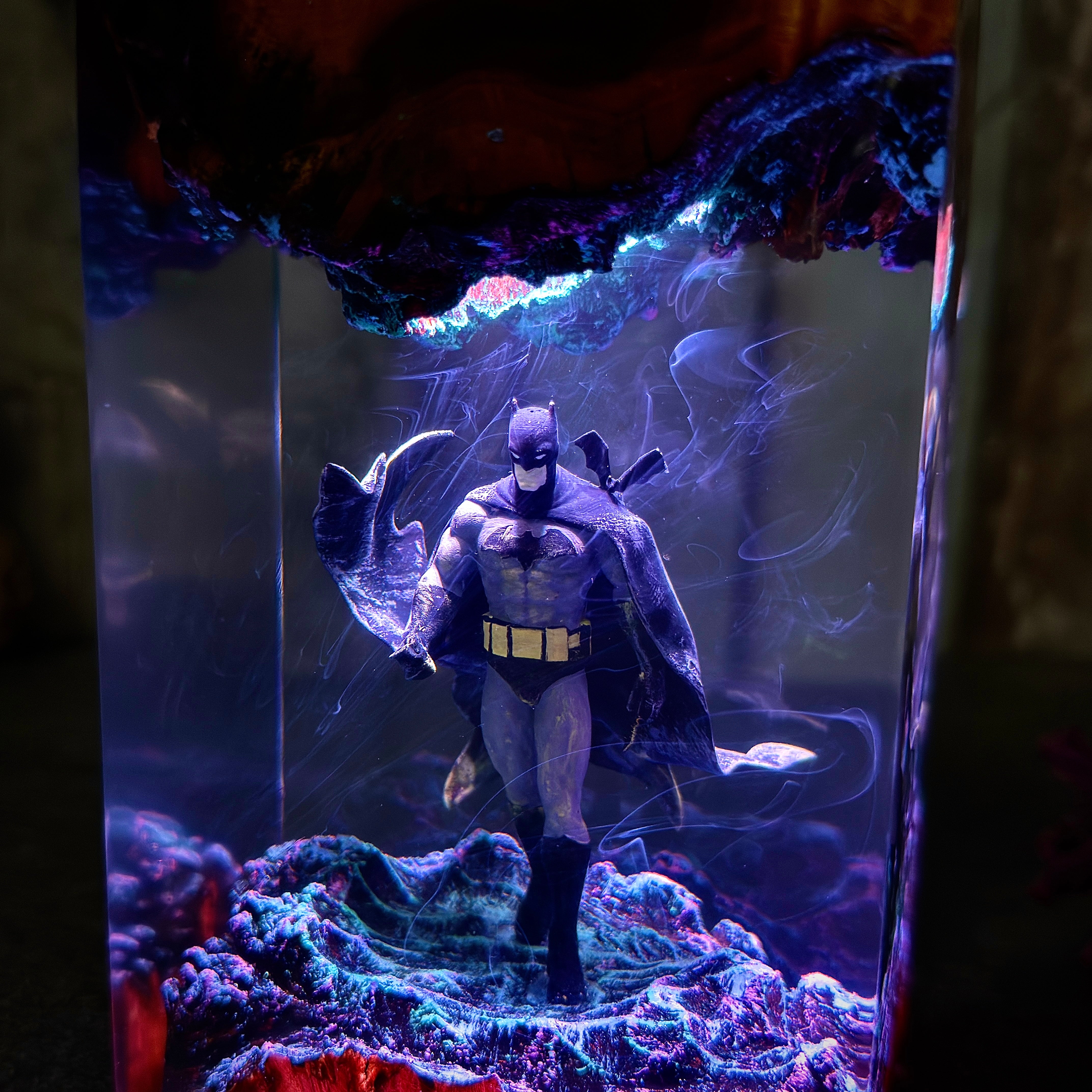 MT WOODENTB, Super Hero Epoxy lamp, Custom Movie Character Figure Night Light, The Dark Night lamp resin lamp, resin Diorama, Cool gifts Boys Room Decor