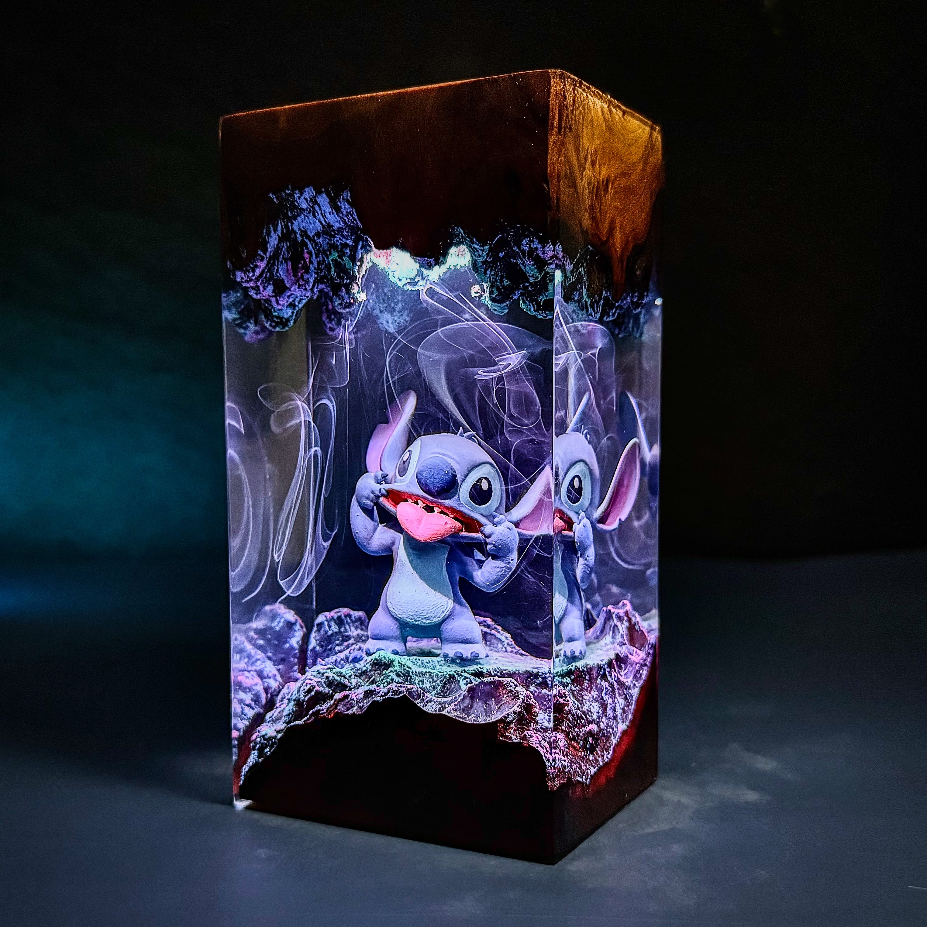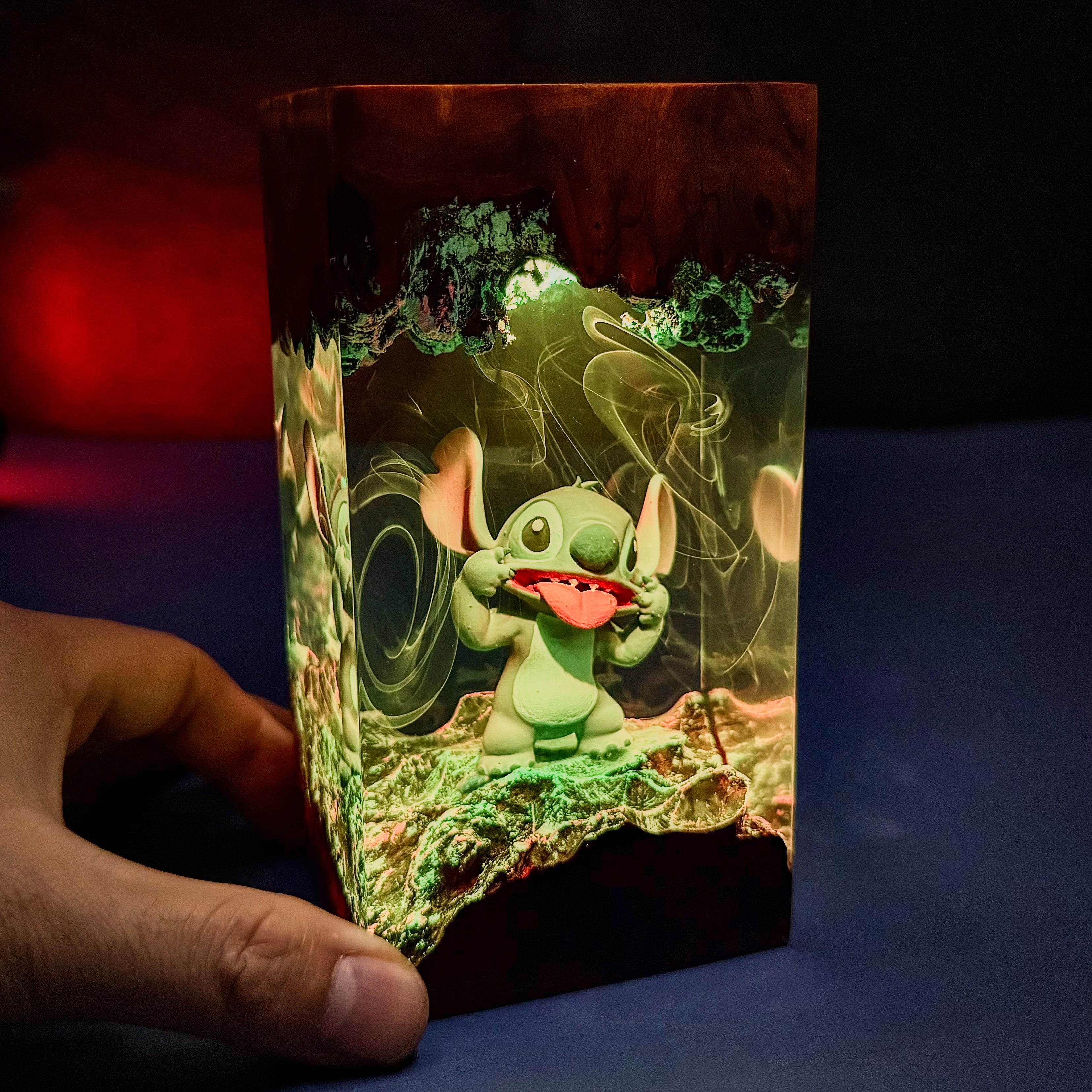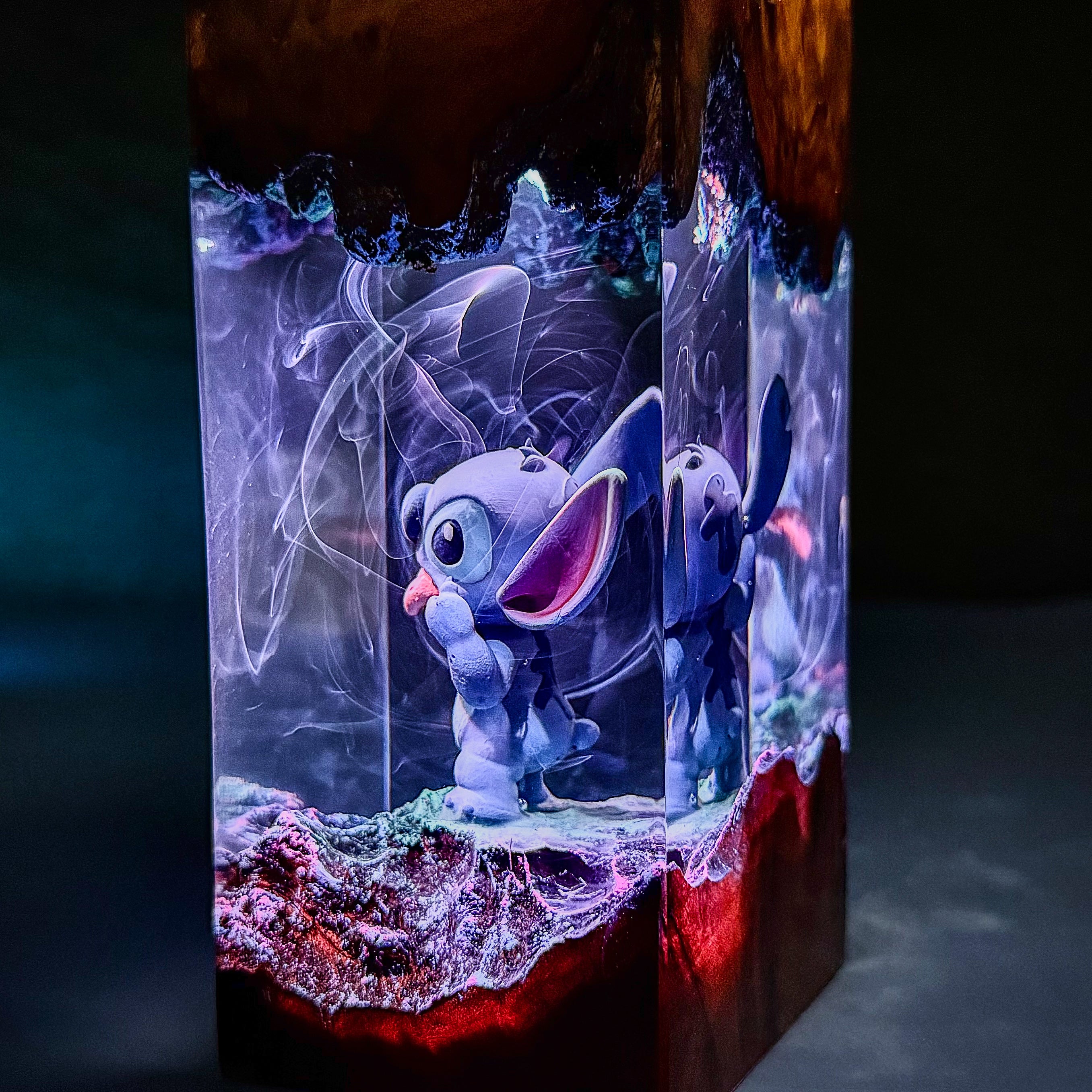 MT WOODENTB, Anime Resin Lamp, STITCH Cute Resin Lamp, Cute 3D Cartoon Epoxy Lamp, Diorama Night Light, Decorates Study Desk, Work desk