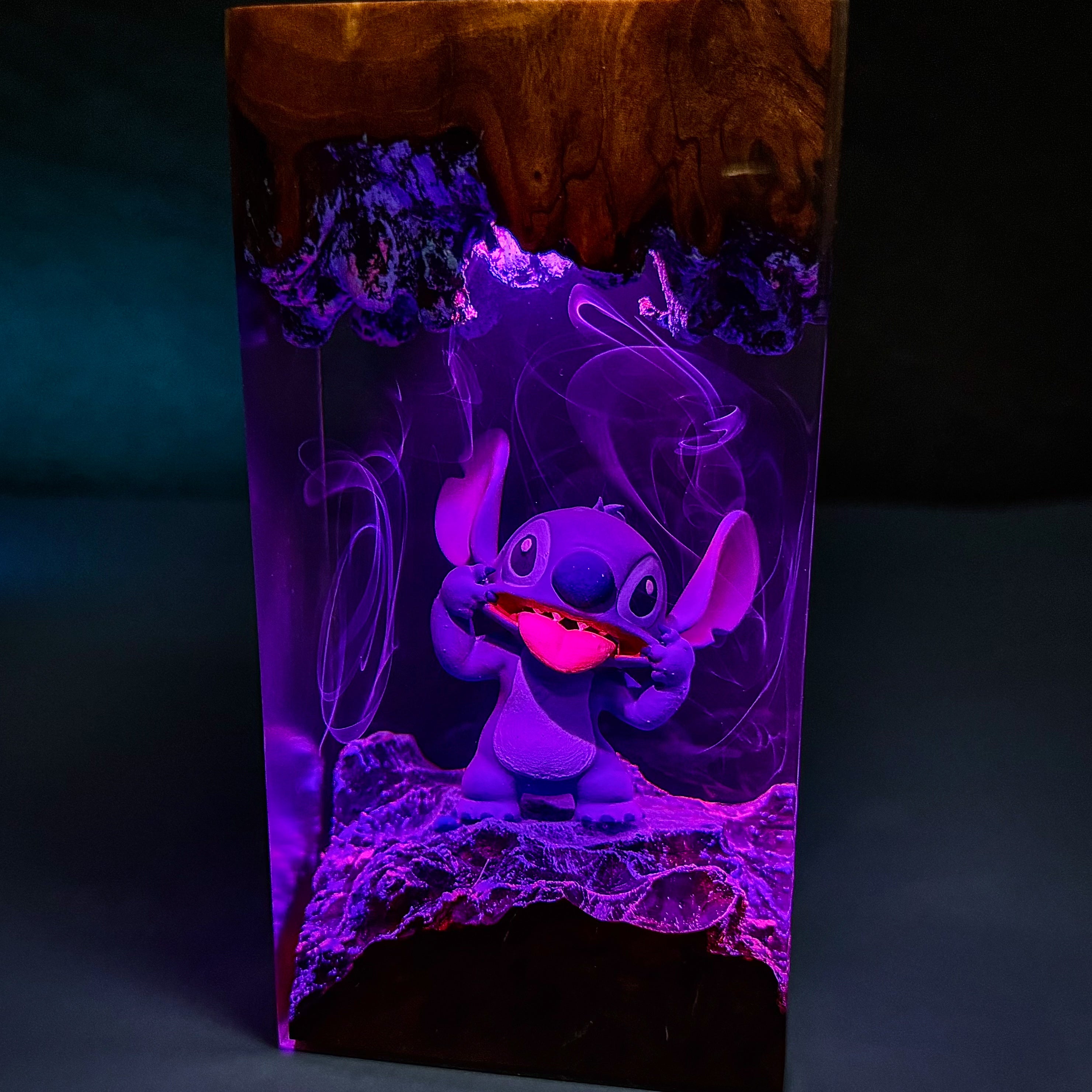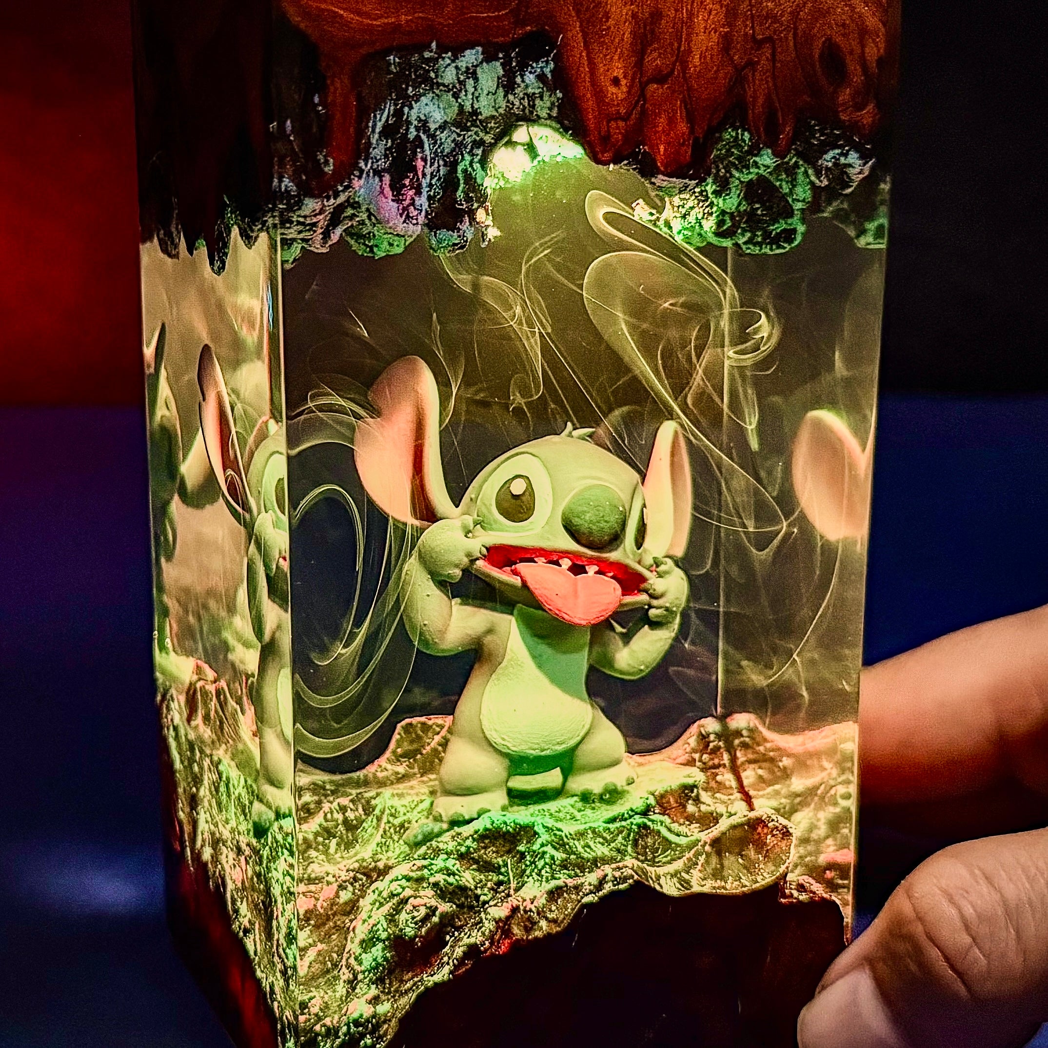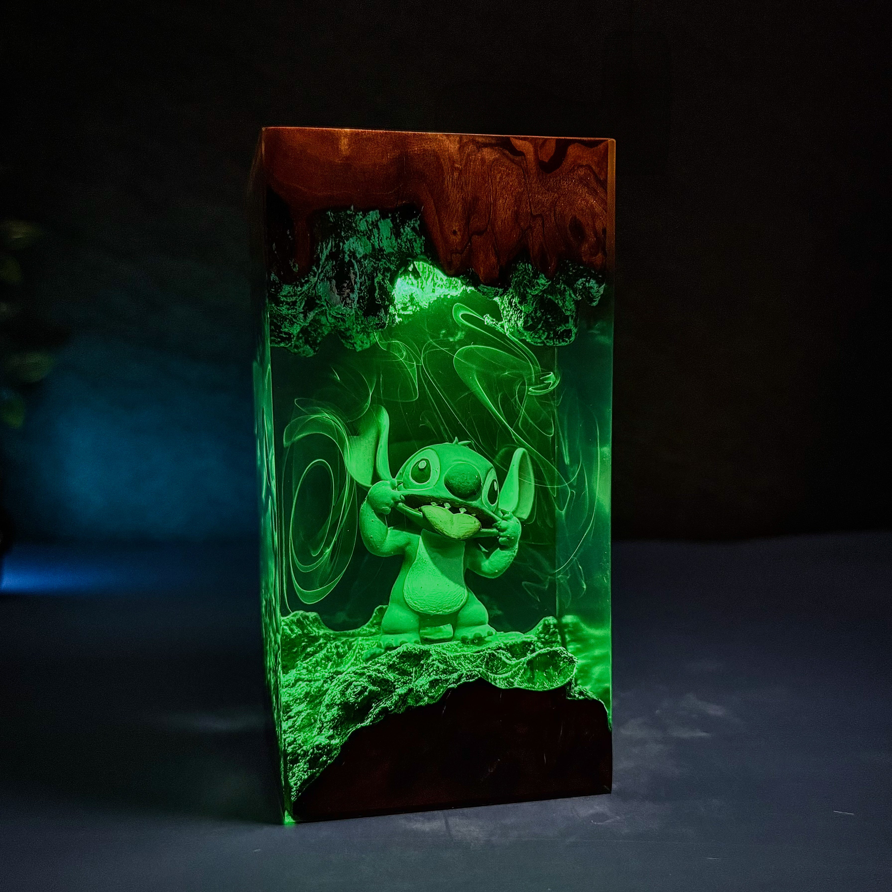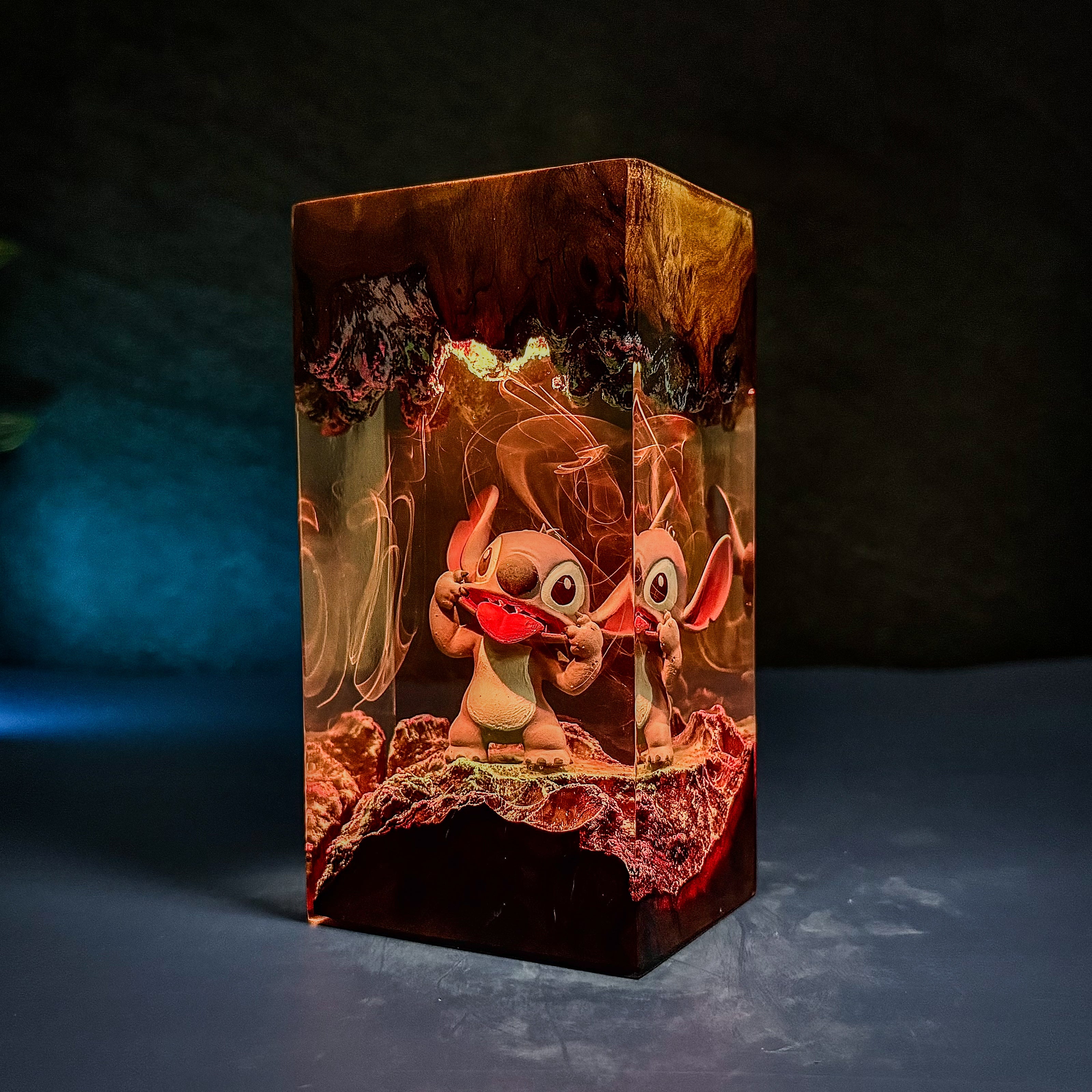 MT WOODENTB, Anime Resin Lamp, STITCH Cute Resin Lamp, Cute 3D Cartoon Epoxy Lamp, Diorama Night Light, Decorates Study Desk, Work desk